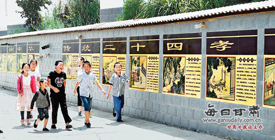 村头墙上的“二十四孝图”,让孩子们潜移默化地接受传统美德教育。
