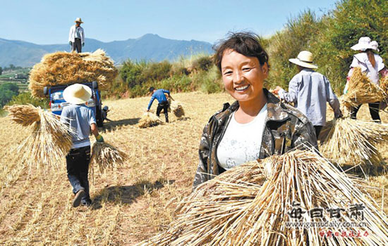 团结友爱、互帮互助,拉运小麦的村民脸上洋溢着幸福。