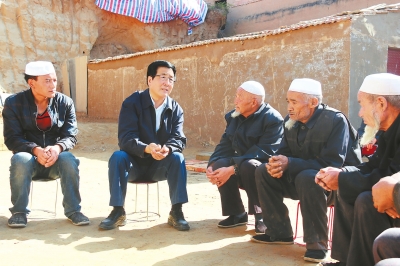 省委书记、省人大常委会主任林铎与东乡县基层群众围坐在一起,向群众宣讲党的十九大精神,并听取大家在推进脱贫攻坚、发展富民产业等方面的意见建议。